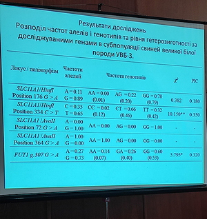 – Віталій Сухно “Ефективність використання у селекції свиней ДНК-маркерів асоційованих із резистентністю до інфекційних захворювань” (науковий керівник – д. с.-г. н., с.н.с. Ващенко П. А.).